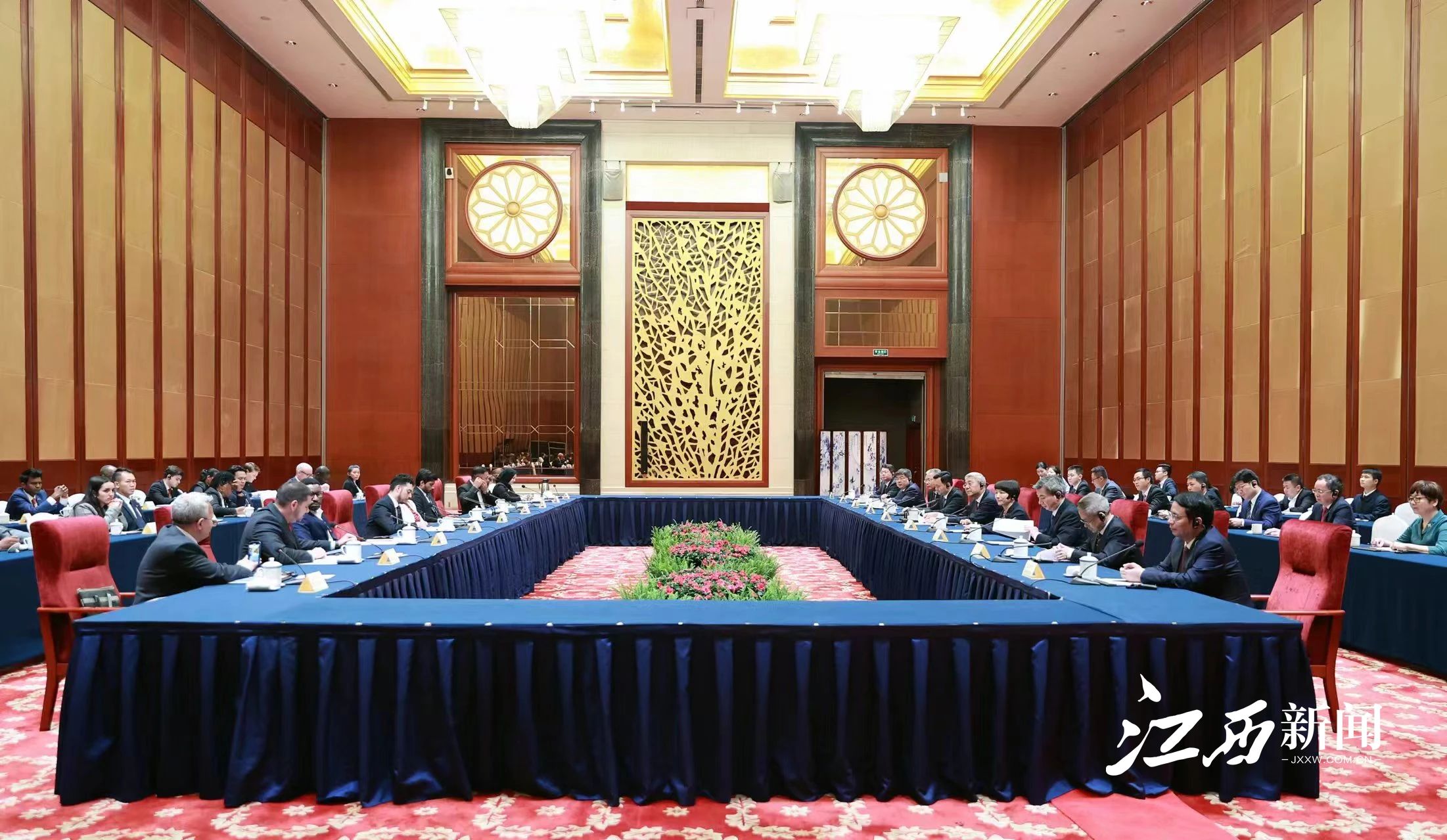 尹弘代表中共江西省委向各位嘉宾到访表示欢迎,并简要介绍了江西省情。他指出,江西地处中国长江中下游南岸,历史文化悠久,生态环境优美,区位优势独特,自然资源丰富,发展态势良好。去年10月,习近平总书记再次亲临江西考察,提出了“走在前、勇争先、善作为”的目标要求,赋予江西发展新定位、新使命。我们深入贯彻习近平总书记考察江西重要讲话精神,全面落实创新、协调、绿色、开放、共享的新发展理念,大力发展新质生产力,纵深推进江西内陆开放型经济试验区建设,深度融入共建“一带一路”,积极参与国际大循环,加快推进高质量发展和高水平对外开放,奋力谱写中国式现代化江西篇章。