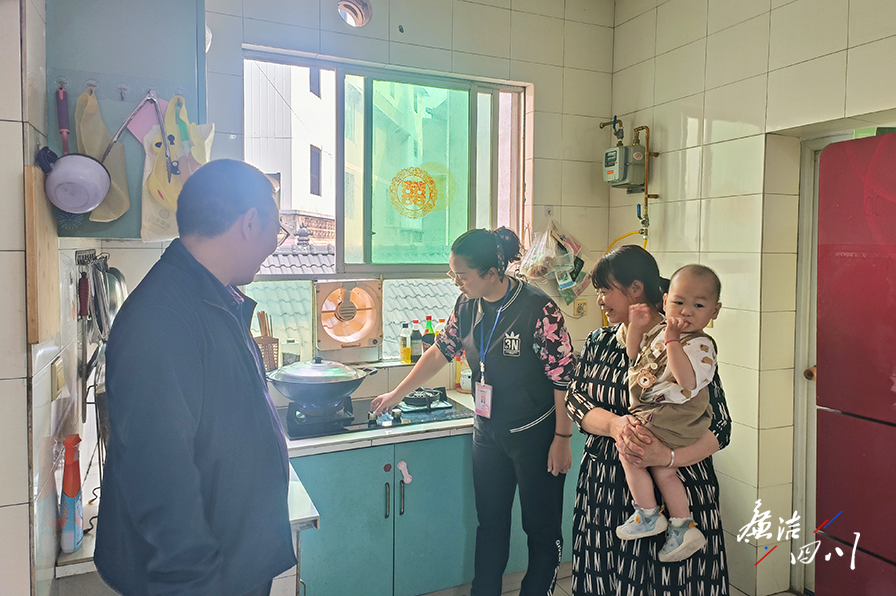 市中区纪检监察干部入户对天然气通气使用情况进行回访。(陈月娟 摄)