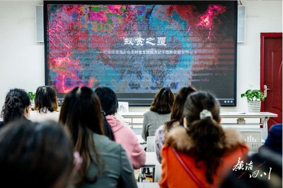 广安区浓洄街道组织村(社区)干部观看警示教育片。(伍敏 摄)