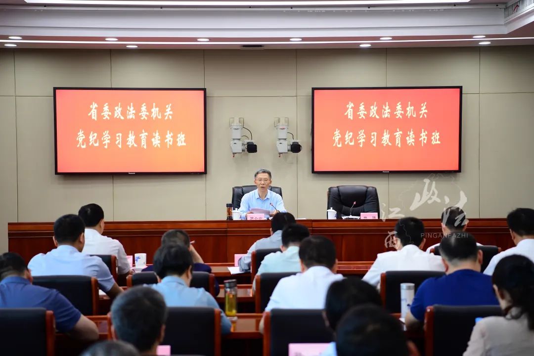 罗小云强调,要认真学习领悟,确保学深学透。要深入学习领会习近平总书记关于纪律建设的重要论述,重点学习《中国共产党纪律处分条例》,准确把握“六项纪律”的主旨要义和规定要求,做到真抓实学、学有质量、学出成效。要深入研讨交流,确保共促提高。要以当一名中国共产党党员的创新理论“好学生”的姿态,注重把学习思考与实践运用贯通起来,把检视自身与以案促学统筹起来,自觉用党规党纪校正思想和行动,真正使学习党纪的过程成为增强纪律意识、提高党性修养的过程。要坚持学以致用,确保实际效果。要以扎实作风、端正学风和务实举措开展好读书班,将党纪学习教育焕发出来的政治热情进一步转化为干事创业的强大动力,注重研究和解决工作中的实际问题,切实防止学习和实践“两张皮”,以推动全省政法工作现代化的实际成效,交出党纪学习教育的优异答卷。