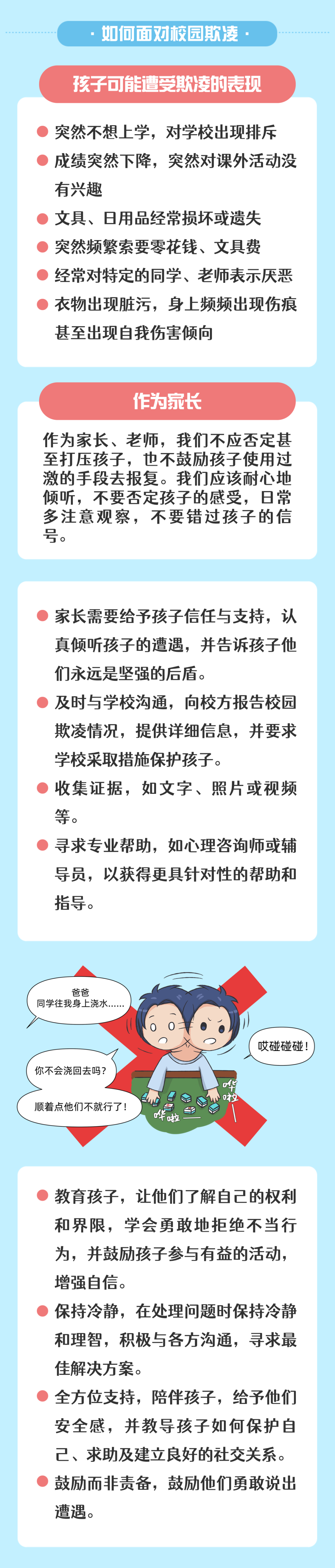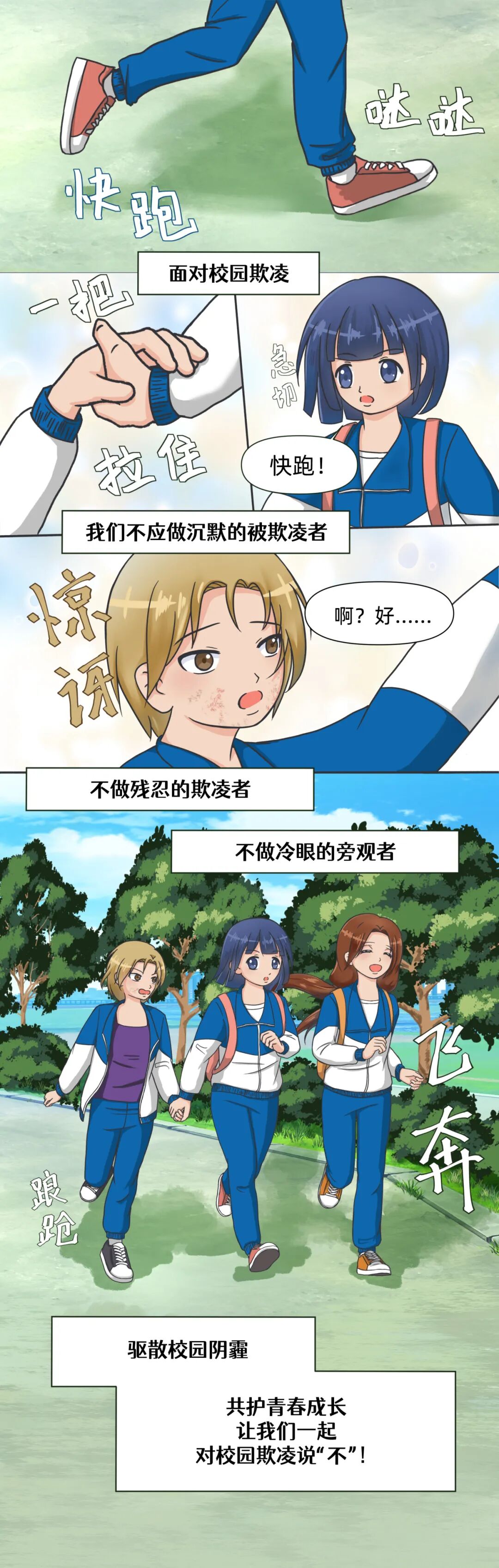 面对校园欺凌,我们不应该做沉默的被欺凌者,不做残忍的欺凌者,不做冷眼的旁观者,让我们一起对校园欺凌说“不”。