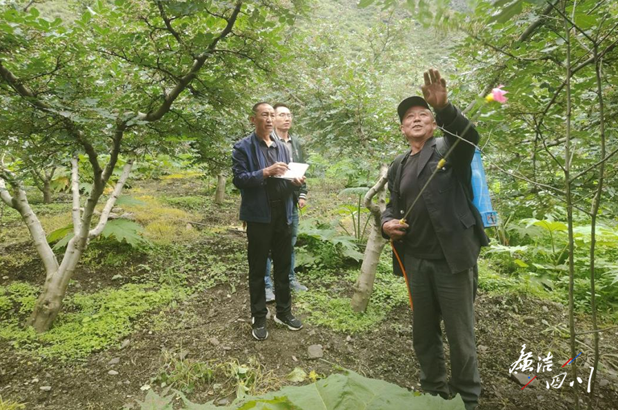 松潘县纪检监察干部在农业园区了解花椒产业发展情况。(刘继琴 摄)
