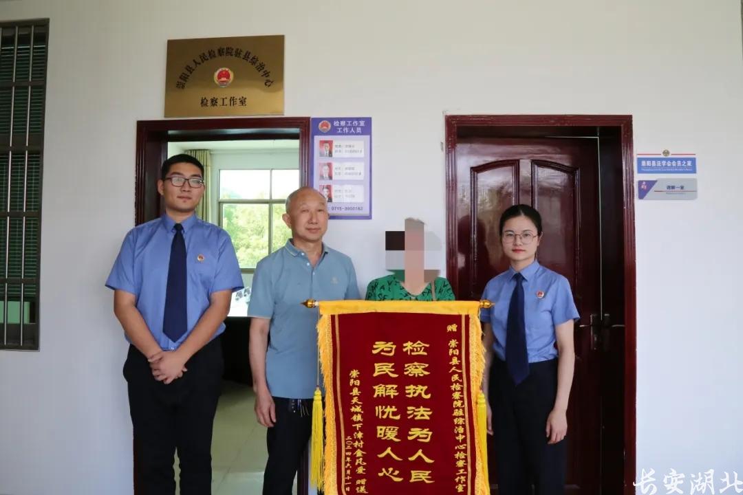 日前,当事人金某某顶着烈日来到咸宁市崇阳县检察院驻县综治中心检察工作室(以下简称“驻综治中心检察工作室”),将写有“检察执法为人民,为民解忧暖人心”锦旗送到检察官的手中,“感谢检察机关对我的帮助,让我晚年有所保障”,金某某对着检察官说道。