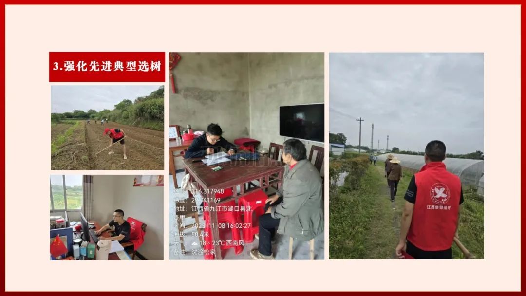 江西省司法厅指挥中心党支部积极打造具有特色、富有活力、卓有成效的支部党建新模式,切实把党建优势转化为推动全省司法行政应急指挥和科技信息化工作高质量发展的强大动力。近年来,被评为全国司法行政系统先进集体,受到人社部、司法部通报表彰;连续6年获评厅机关先进处室;被厅党组评为“厅直系统先进基层党组织”;在省部级以上工作考核评比中,多次摘金夺银、荣获先进;被厅党组荣记集体二等功。 聚焦政治功能强 提升政治引领力 欲筑室者,先治其基。坚持将政治功能强作为支部建设的根本,在走好“第一方阵”上持续用力,努力在旗帜鲜明讲政治上走在前、做表率。一是持续加强理论武装。通过支部学习、党课教育、“学习强国”平台等形式,组织支部党员干部深入学习习近平新时代中国特色社会主义思想、党的二十大精神和总书记考察江西重要讲话精神,引导党员干部坚定拥护“两个确立”、坚决做到“两个维护”。二是大力传承红色基因。组织支部党员干部先后赴八一起义纪念馆、小平小道等开展实践教学,引导党员干部传承红色基因、坚定理想信念,推动党员干部讲政治、践初心、担使命。三是创新开展特色活动。常态化开展节假日读一好书、访一高人、察一民情、做一好事、写一心得“五个一”活动,推动党建品牌创建有力、支部特色掷地有声、业务水平不断提升。 聚焦支部班子强 提升组织领导力 简能、而任之,择善、而从之。深入推进党建工作“三化”建设,切实增强支部班子组织能力,充分发挥支部战斗堡垒作用。一是抓好组织建设。围绕“四方面标准化、六方面规范化”要求,对照指标清单,对支部党建查漏补缺,进一步提升支部建设“三化”水平。二是抓牢制度落实。严肃党内政治生活,严格落实“三会一课”、谈心谈话、联系基层等制度,确保支部党建根基更加牢固。三是抓实能力提升。开展“学习二十大精神,建强党支部品牌”主题微党课交流活动,多措并举提升党员干部履职能力。 聚焦党员队伍强 提升团队凝聚力 同心而共济,终始如一。坚持“以党建带队建”,严管与厚爱结合、激励与约束并重的机制,切实增强支部干部队伍理论深度、实践力度、情感温度,在大战大考中充分发挥先锋模范作用。一是强化党员带头作用。全年365天、全天24小时高效运转,是指挥中心的工作常态。大力开展“支部创品牌、党员当先锋”活动,引导党员干部带头扛起责任、勇挑重担,统筹推进、精准调度全系统维稳安保总体仗,确保全系统安全稳定万无一失;坚决扛起网络安全责任,2020、2021、2022、2023年,连续四届荣获江西省网络安全工作“优秀单位”荣誉称号,在全国司法行政系统名列第一。二是强化党建品牌培育。创新“六个一”组织生活形式,锻造坚强有力的党员队伍。三是强化先进典型选树。支部90后青年党员干部江日辰同志积极响应党组织号召,主动报名投身乡村振兴一线,利用自身的信息技术知识,牵头组织建设“智慧乡村管理平台”,打造了乡村发展新动能。 聚焦作用发挥强 提升发展创新力 苟日新、日日新、又日新。该支部坚持党建和业务深度融合、同频共振,结出丰硕的创新成果。一是科技底色浓。“区块链+法治”项目成功入选国家区块链创新工程,江西司法行政信息化建设正式迈入“国家队”行列。我们承担了多个国家级、省部级科研项目的研发设计、应用推广工作,取得重大突破,在全省社会发展科技创新大会上作了经验介绍。二是智慧成色亮。成功争取全省数字政府建设试点落户省司法厅,司法行政机关成为“数字江西”建设的领头羊,一批具有法治辨识度、在全省示范引领、有全国影响力的信息化建设成果竞相涌现。三是创新特色多。建设的远程法律服务“乡乡通”平台,荣获全省政务数据共享应用大赛一等奖、荣获全省数字乡村创新发展优秀案例第一名,作为全省数字政府建设重大创新项目,代表江西连续两年参加数字中国峰会,“江西经验”成为“全国样板”。 |