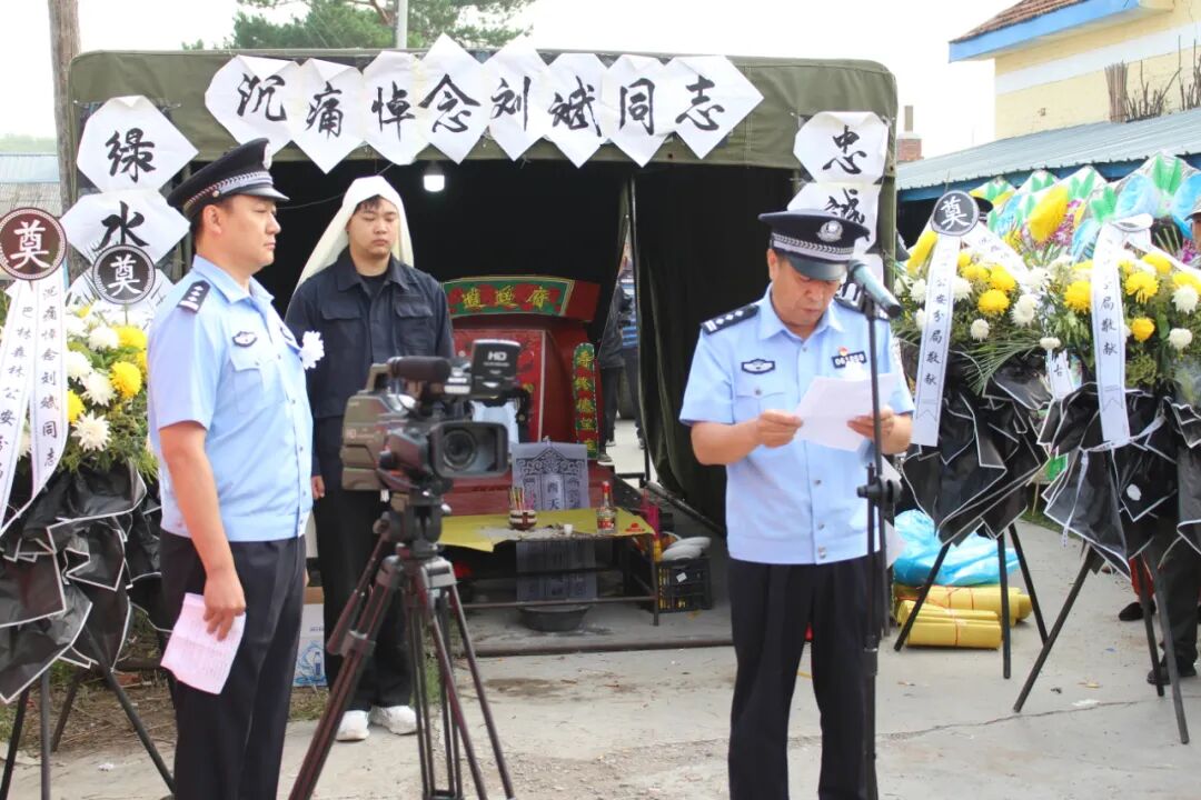 告别仪式上,介绍了刘斌同志的生平,深情回忆了刘斌同志从警生涯,高度肯定了刘斌同志忠诚担当、英勇无畏、无私奉献的敬业精神,对他因公殉职表示深切哀悼。在低鸣的哀乐中,参加仪式全体人员肃立默哀、鞠躬致敬、沉痛哀思。