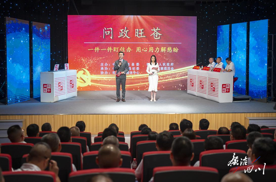 以推动解决群众急难愁盼为主题的《问政旺苍》全媒体直播节目现场。(陈加普 摄)