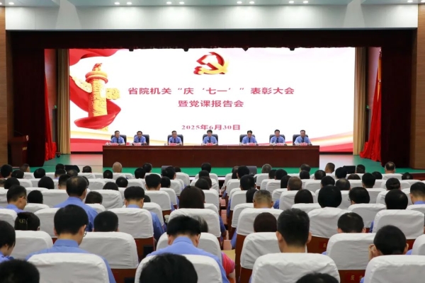 6月30日上午,省检察院召开“庆‘七一’”表彰大会暨党课报告会,为机关光荣在党50年的党员颁发纪念章,表彰2024年度机关“两优一先”、表扬“皖检之星”。安徽省检察院党组书记、检察长宋文娟出席会议,并围绕深入贯彻中央八项规定精神为机关全体检察人员讲授专题党课。