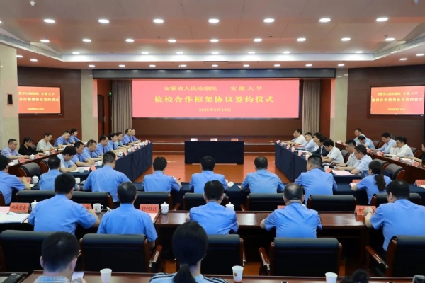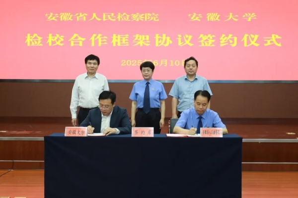 6月10日下午,安徽省人民检察院与安徽大学检校合作框架协议签约仪式在省检察院举行。