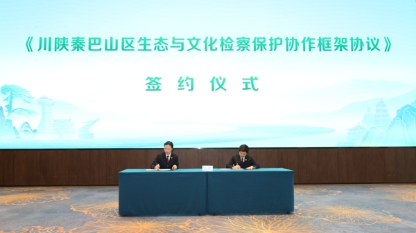 会上,四川省检察院党组成员、副检察长蒋敏,陕西省检察院副检察长高洁分别代表两省检察院签署《川陕秦巴山区生态与文化检察保护协作框架协议》。该《框架协议》围绕4个方面提出13条具体措施,建立省级深层次跨区域检察协作机制,共护秦巴山区生态屏障与文化遗产。