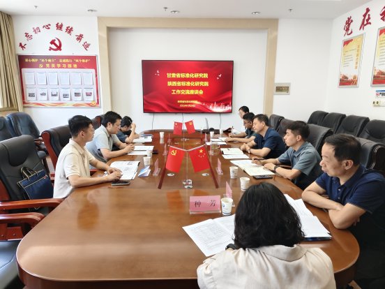 7月25日,甘肃省标准化研究院一行到陕西省标准化研究院开展座谈交流。座谈会上,双方就标准科研、地方标准改革、区域公共品牌建设、国际标准服务及建立合作机制等议题展开探讨。