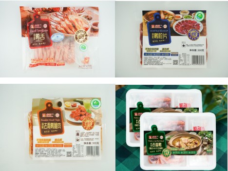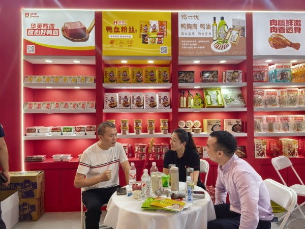 冻鲜品展区:华英厨选鸭舌、鸭胗片、鸭头、鸭肠等系列产品,搭配精选卤料包,以“现做更放心”的理念,是居家自卤、现烤、现捞的最佳选择,吸引众多客户纷纷前来咨询购买。厨选系列产品让您实现自己动手,随时畅享美味的“吃客”自由。