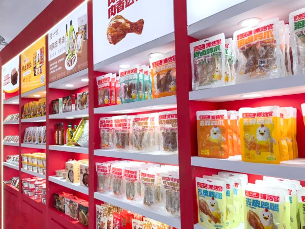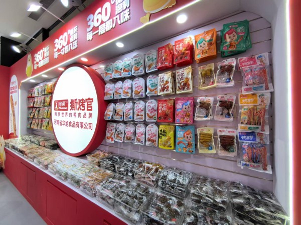 休闲零食区:华旭食品公司首创新品“羽力能量棒”精彩亮相,鸭肉含量高达70%以上,精选出口日韩的优质鸭肉原料,采用温控烤制工艺,完美契合健康生活需求,成为采购商关注的焦点。