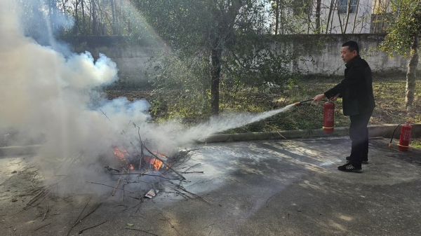 灭火实战演练环节。全体参训人员在安全责任人的指导下,轮流上场操作,亲身体验了使用灭火器扑灭“火情”的全过程。在预先设定的安全区域内,面对“熊熊燃烧”的火焰,大家沉着冷静,严格按照操作步骤,成功将火源扑灭。整个演练过程紧张有序、配合默契,达到了预期的效果。