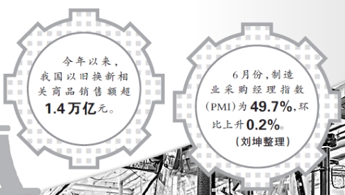 江西省南昌市红谷滩区某商场里的一家新能源汽车销售展厅内,顾客在咨询汽车“以旧换新”补贴政策。朱海鹏摄/光明图片 云南省蒙自市一店内工作人员为今年高考考生讲解手机“国补”政策。薛莹莹摄/光明图片 顾客在江苏省海安市墩头镇一家商场选购补贴家电。新华社发 大规模设备更新行动的推进,为山东省潍坊市某企业智慧农业机械生产注入新动能。新华社发 【经济界面】 “趁着暑假,我准备给儿子买台新电脑,为他上大学做好准备。现在还能享受国家补贴,很划算。”浙江杭州市民顾女士说。 “家电家装厨卫补贴20%”“‘国补’叠加分期免息,消费品以旧换新优惠多”……近一段时间以来,无论是线上店铺,还是线下卖场,“国补”广受欢迎,也为老百姓带来了看得见、摸得着的实惠。 今年以来,按照党中央、国务院部署,国家发展改革委、财政部、商务部等部门落实加力扩围实施“两新”(大规模设备更新和消费品以旧换新)政策,延续2024年好的经验做法,政策效应持续显现。 当前,“两新”政策实施进展如何?后续如何加力扩围,进一步有效激发内需潜力?记者就此进行了采访。 更多“真金白银”惠及消费者 “快来瞧一瞧,这是我们店里卖得很火的一款,轻便智能,颜值也高,还能享受‘国补’!”日前,在安徽省阜阳市一家电动自行车专卖店,销售员王永刚正在向前来选购的市民推介相关产品及以旧换新政策。 据王永刚介绍,“五一”假期、“618”购物节期间,店里开展了一系列促销活动,消费者对于以旧换新的热情不减,销售额持续增长。 商务部等5部门联合印发的《关于做好2025年度电动自行车以旧换新工作的通知》明确,从1月1日起延续开展以旧换新。截至5月20日,今年交售旧车、换购新车各608.0万辆,带动新车销售178.2亿元。 除电动自行车外,手机、平板电脑等数码产品同样销售火热。5月份,限额以上单位家用电器和音像器材类、通信器材类、文化办公用品类、家具类商品零售额同比分别增长53%、33%、30.5%、25.6%,合计拉动社会消费品零售总额增长1.9个百分点,比上月提高0.5个百分点。 而这背后,持续加码的政策带来实实在在的优惠,带动居民消费潜力持续释放。 今年以来,消费品以旧换新政策“加力扩围”,不仅增加了手机、平板、洗碗机等新品类,安排的超长期特别国债资金规模也翻了一番。 国家发展改革委政策研究室副主任、新闻发言人李超介绍,消费品以旧换新方面,今年超长期特别国债资金支持力度为3000亿元,前2批共1620亿元资金已按计划分别于1月、4月下达。同时,国家发展改革委会同有关方面还把地方资金使用情况作为重要因素,对去年多支出的地区进行了倾斜支持。 “总的看,相关政策持续显效,稳投资、扩消费、促转型、惠民生的关键作用进一步凸显,家电、家具、通信器材等销售快速增长,今年以来以旧换新相关商品销售额超1.4万亿元。”李超说。 记者日前从有关部门获悉,目前,我国消费品以旧换新加力扩围政策没有变化,补贴资金使用进度符合预期,第三、四季度中央资金将陆续下达,各地也将持续做好配套资金支持。相关部门将指导地方进一步优化完善补贴发放方式,确保政策实施更加平稳有序、资金均衡使用到年底。 “从各地实践来看,政策不仅直接带动相关消费品销售额显著提升,还积极推动消费品结构升级和产业链转型跃升。”中央财经大学教授、中国财政发展协同创新中心副主任姚东旻说,随着后续资金下达、相关制度持续优化,消费品以旧换新政策有望继续发挥积极效用、惠及更多百姓。 大规模设备更新带动产业升级 “经过设备更新改造,我们车间里上料、下料、产品质量检测等作业,都靠机器人完成,生产成本降低约10%,生产效率实现翻倍增长。”重庆市一家机车公司相关负责人说,得益于大规模设备更新政策,公司今年产值可增加2亿元。 放眼全国,类似的故事比比皆是:山东一家农业机械制造公司通过焕新流水线,产能翻了一倍;浙江一家节能空气动力设备公司技术改造项目全面投产后,预计联网设备超400台,生产效率整体提升30%…… “一些传统企业受设备老旧、工艺落后等因素制约,生产效率较低,产能受限。加快传统产业设备更新,能够推动生产方式发生根本性变革,从源头上改变传统产业的发展路径。”重庆市综合经济研究院院长丁瑶说。 李超介绍,今年以来,国家发展改革委会同有关方面加力扩围实施“两新”政策。设备更新方面,超长期特别国债资金支持力度为2000亿元,第一批约1730亿元资金,已按照“地方审核、国家复核”的原则,安排到16个领域约7500个项目,第2批资金正在同步开展项目审核筛选。 同时,各地多措并举简流程、优服务、强支撑,努力打消企业推进设备更新的后顾之忧。比如,山东通过设备购置补贴、工业企业数字化转型奖补等方式,支持企业设备更新和技术改造;重庆出台“技改专项贷”政策,通过线上税企互动平台精准推送税收优惠政策…… 在大规模设备更新政策带动下,相关行业生产快速增长。数据显示,今年5月份,规模以上锂离子电池制造、船舶及相关装置制造、锅炉及原动设备制造等行业增加值同比分别增长28.6%、12.8%、11.8%。前5个月,设备工器具购置投资增长17.3%,拉动全部投资增长2.3个百分点。 6月份,制造业采购经理指数(PMI)为49.7%,比5月份上升0.2个百分点,比4月份上升
